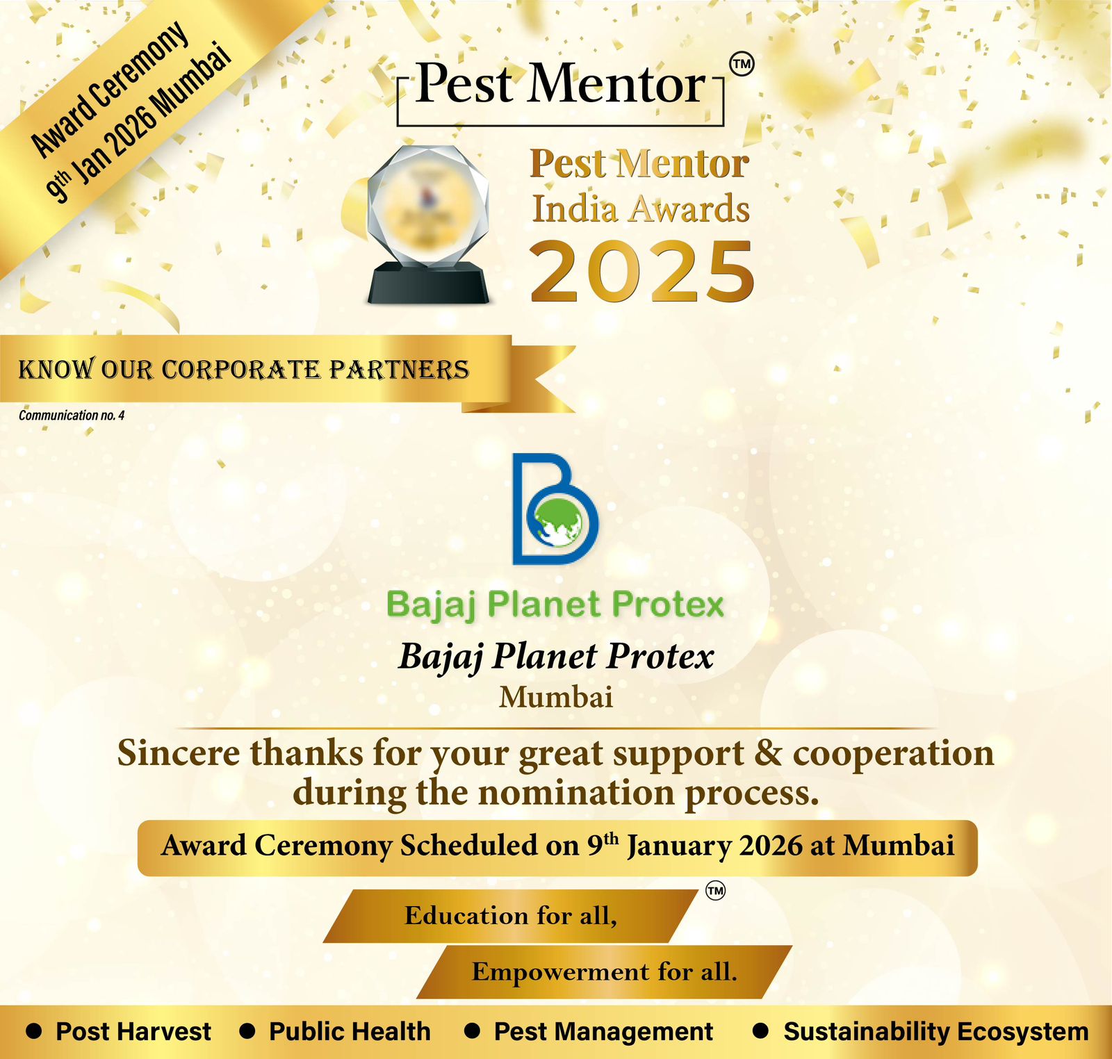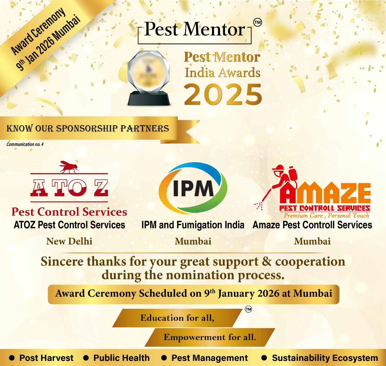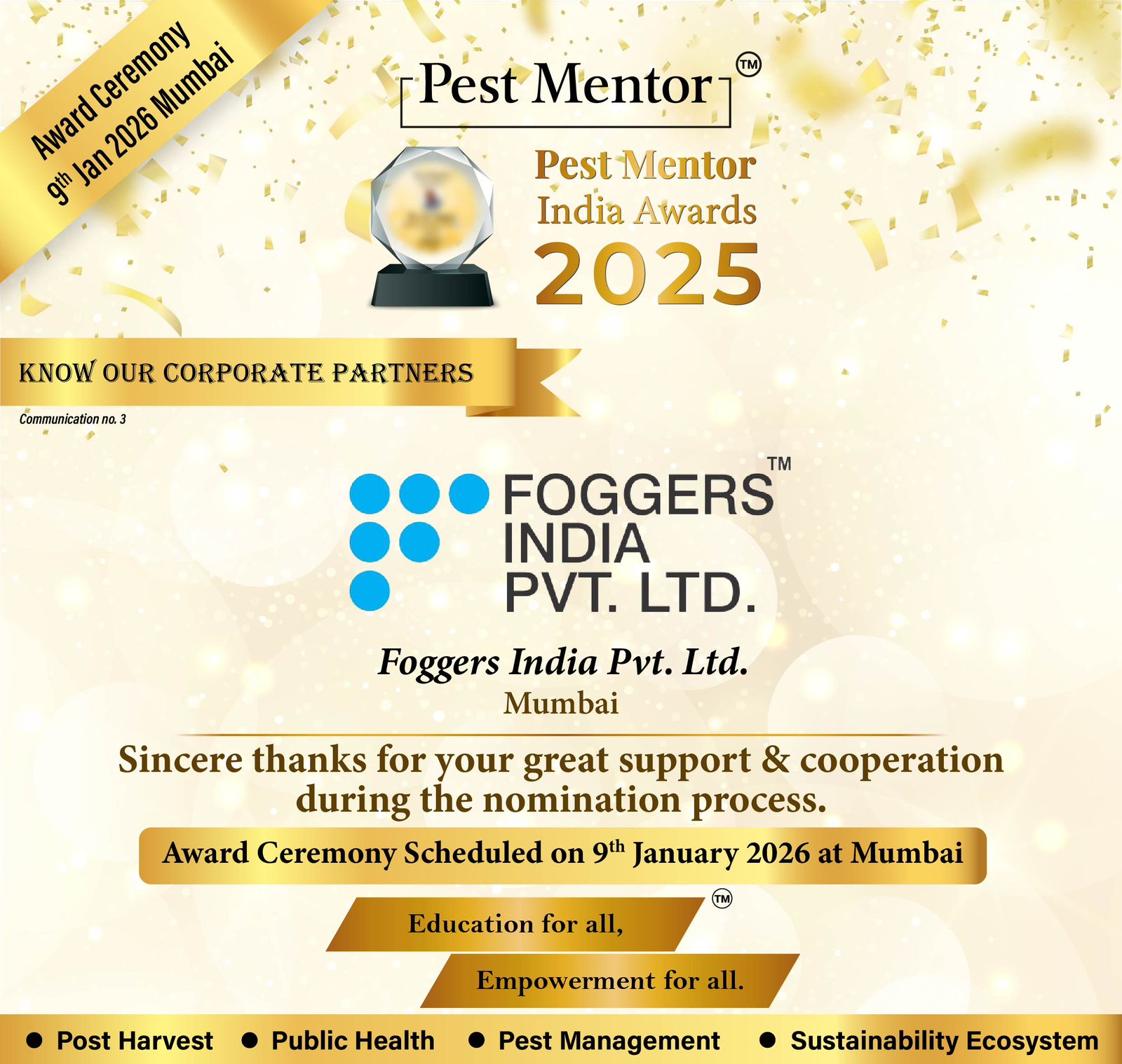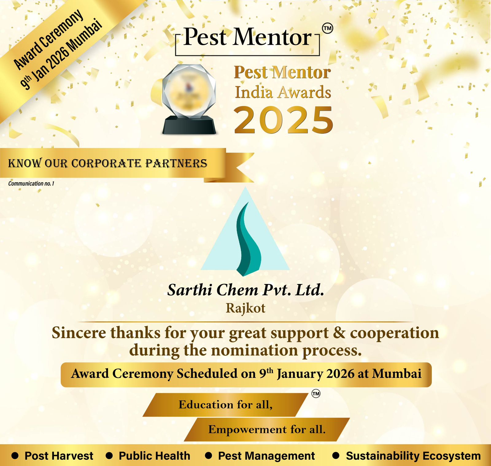 Happy to share that the nomination process and Jury evaluation for the Pest Mentor India Awards 2025 have been successfully completed.