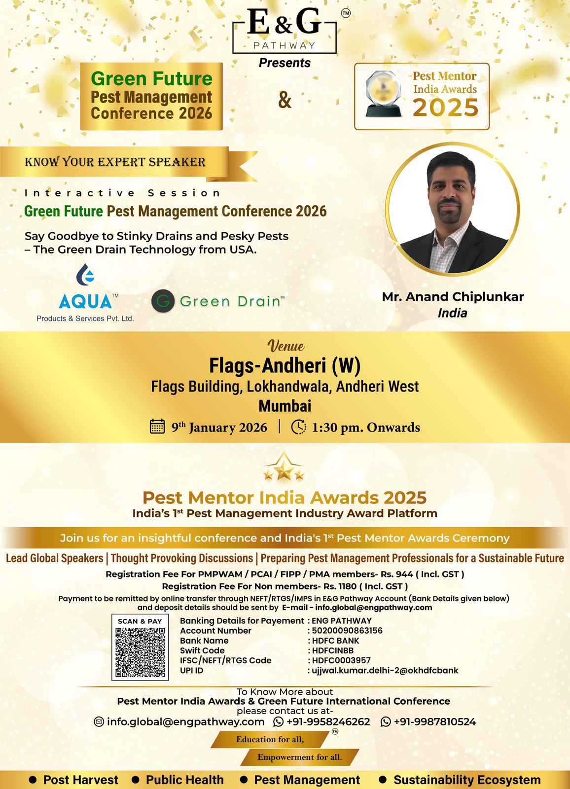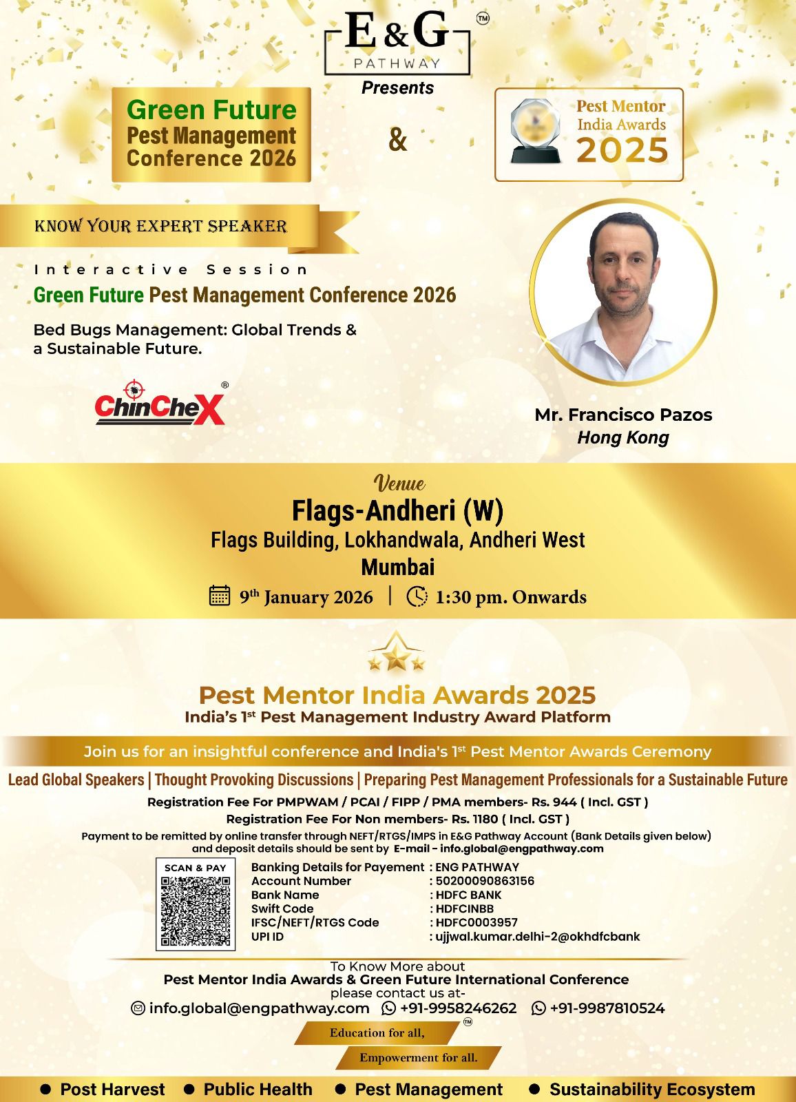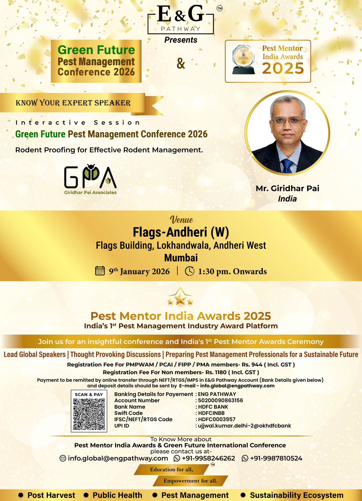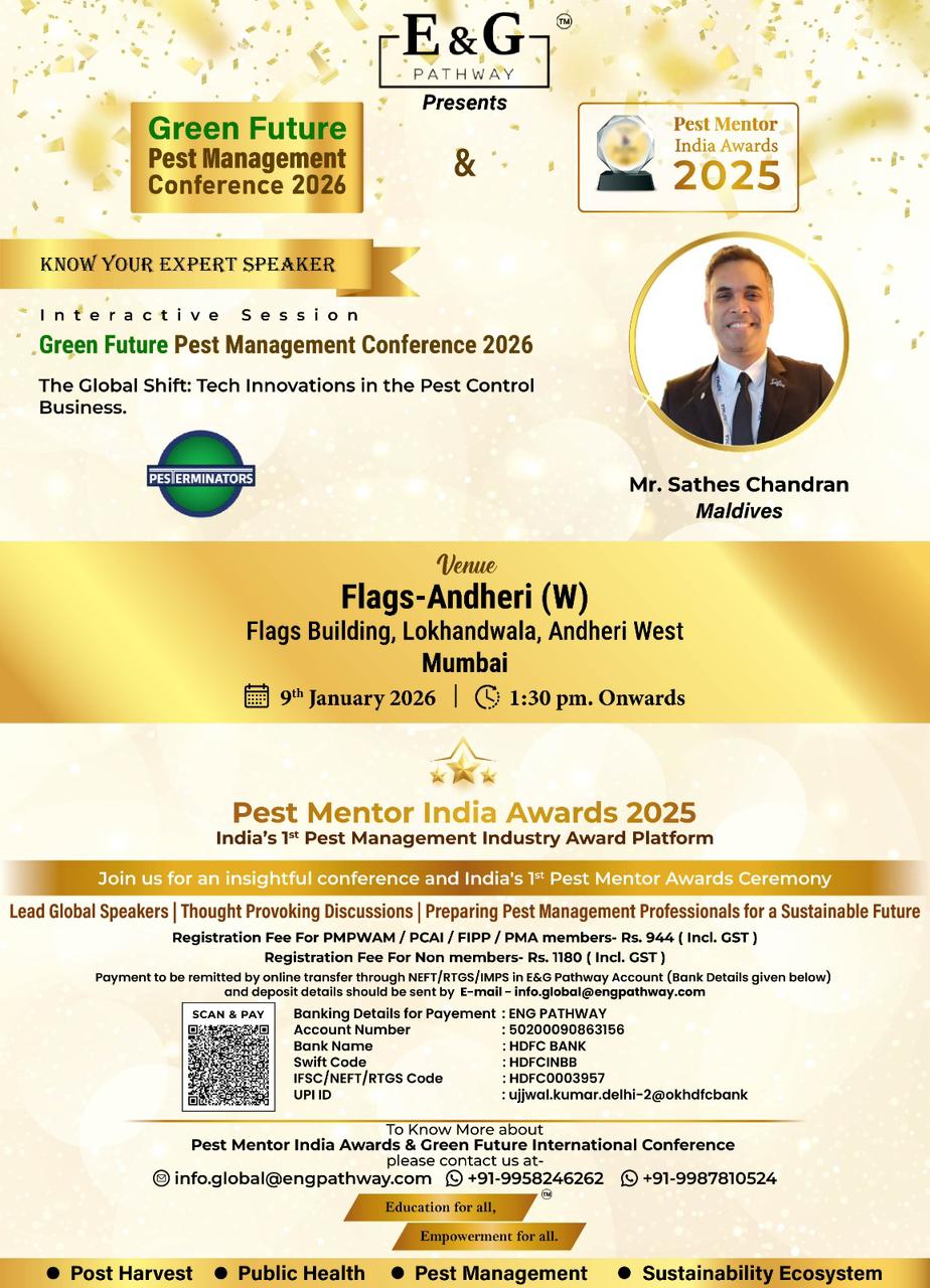 ๐ E&G Pathway is pleased to present the Green Future Pest Management Conference 2026, taking place alongside the Pest Mentor India Awards 2025 โ a landmark gathering bringing global expertise and industry recognition under one roof.