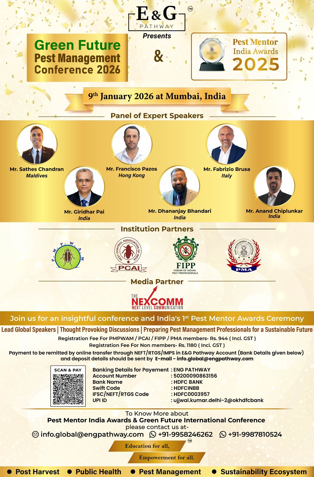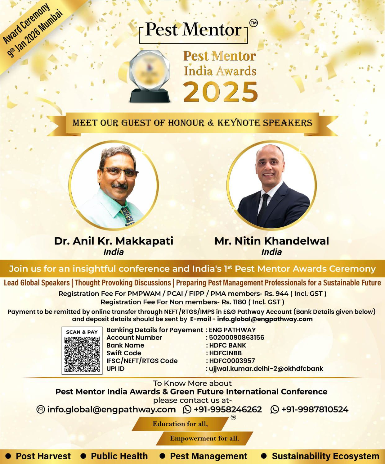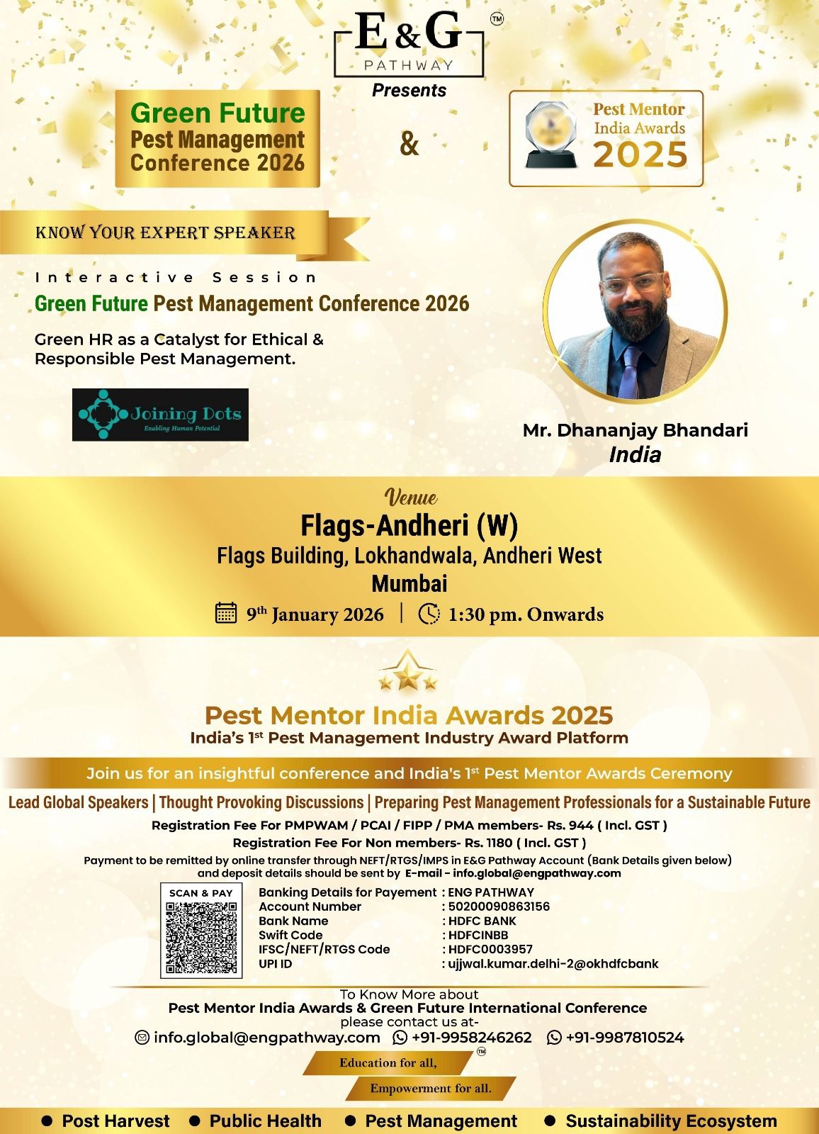 ๐ E&G Pathway is pleased to present the Green Future Pest Management Conference 2026, taking place alongside the Pest Mentor India Awards 2025 โ a landmark gathering bringing global expertise and industry recognition under one roof.