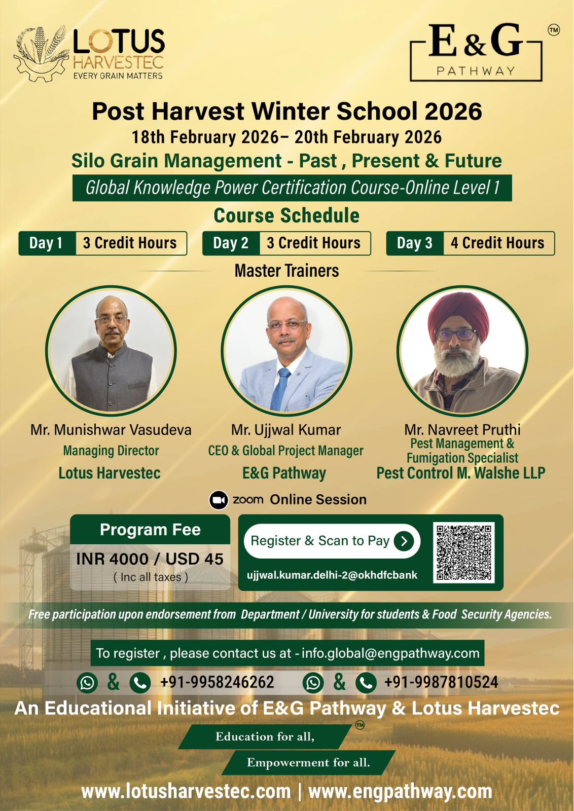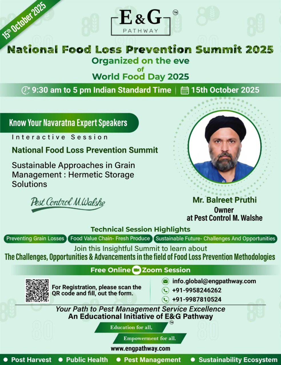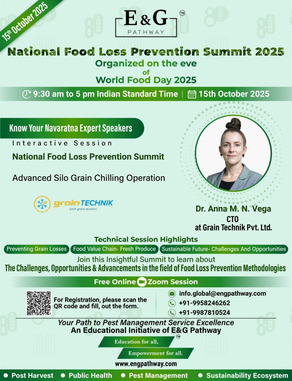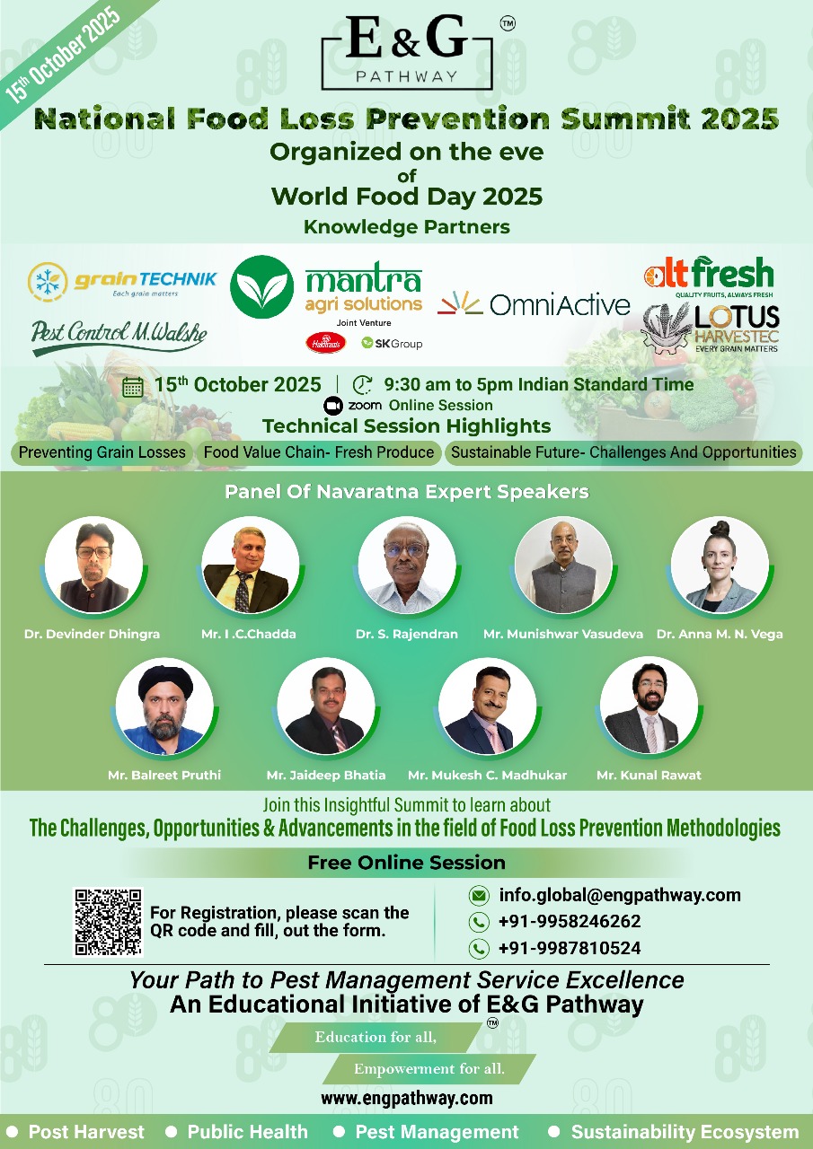 Join us for the National Food Loss Prevention Summit 2025, organized by E&G Pathway on the eve of World Food Day โ a virtual event dedicated to exploring sustainable solutions in grain management and food value chains.