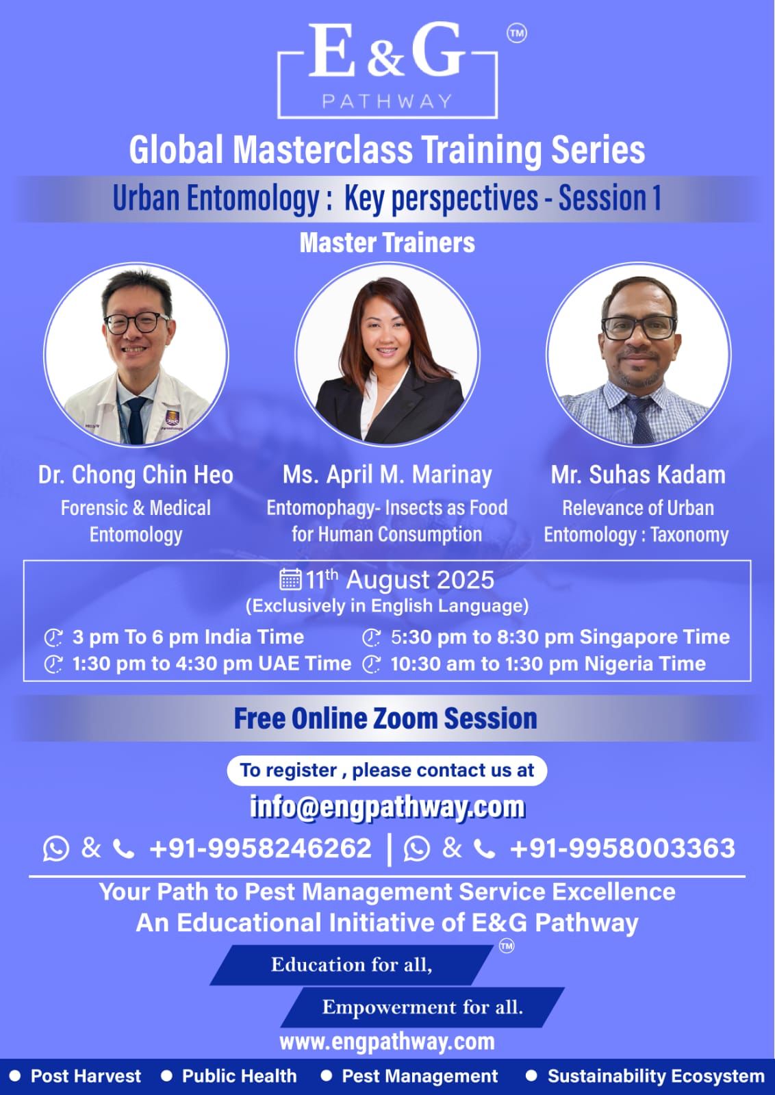 We are pleased to invite you to the opening session of our acclaimed Global Masterclass Series, focusing on the evolving role of Urban Entomology in science, sustainability, and public health.
