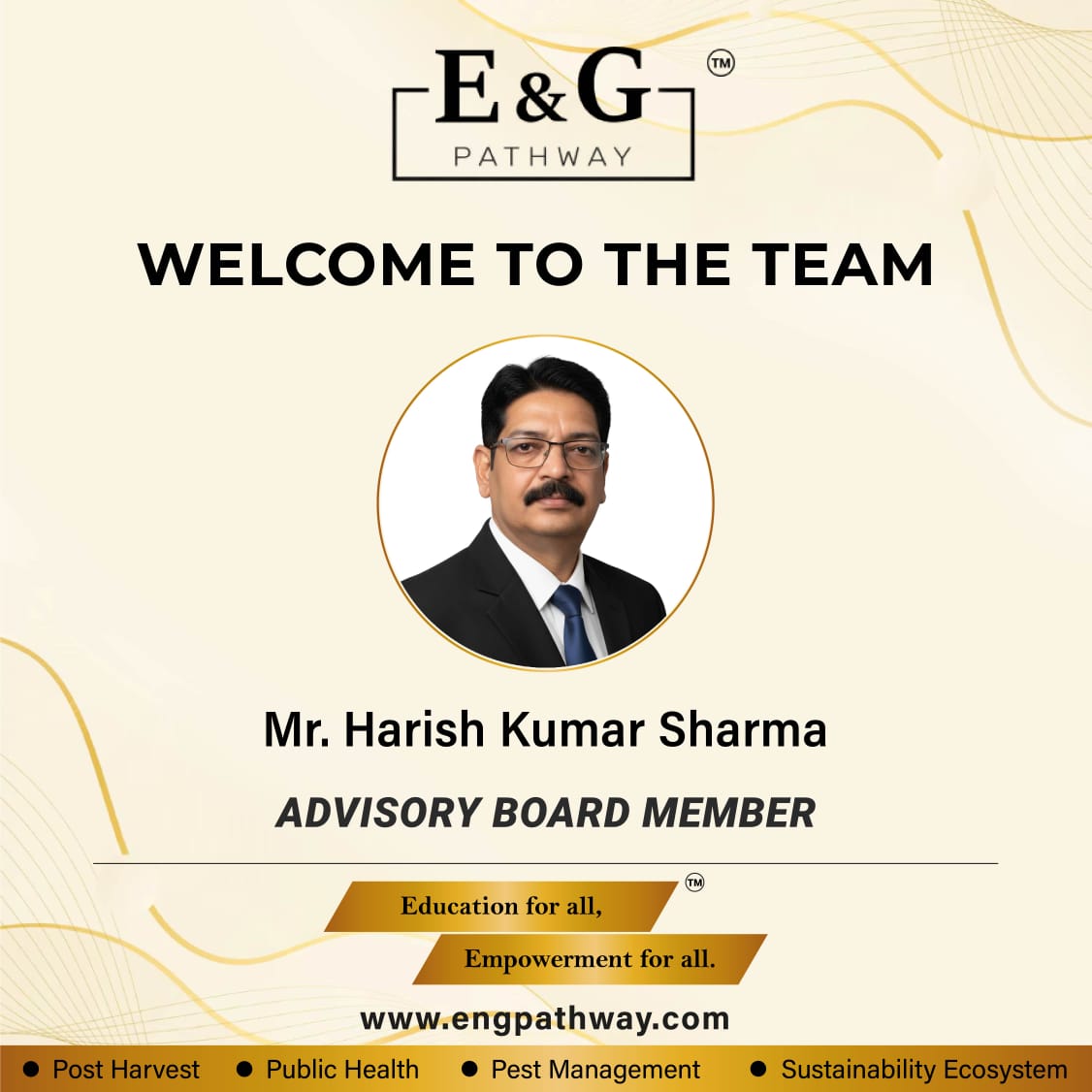 ๐ Welcoming Mr. Harish Kumar Sharma to the E&G Pathway Advisory Board!