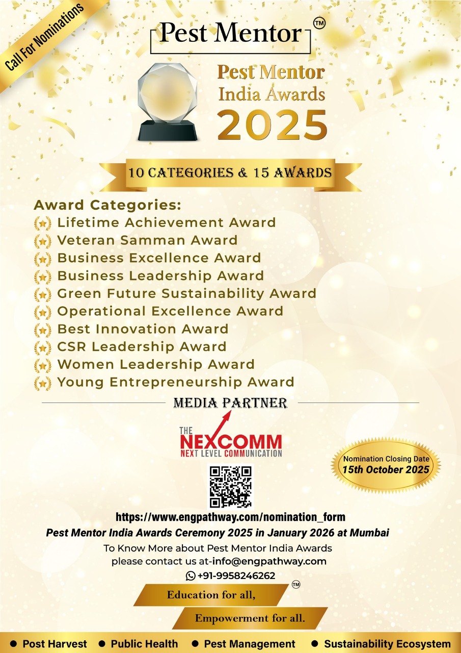 As the Pest Mentor India Awards 2025 move closer to the final celebration, we are pleased to note the successful completion of the nomination scrutiny and Jury evaluation. The process reflects the collective dedication of organisations contributing to the growth and credibility of the pest management sector.