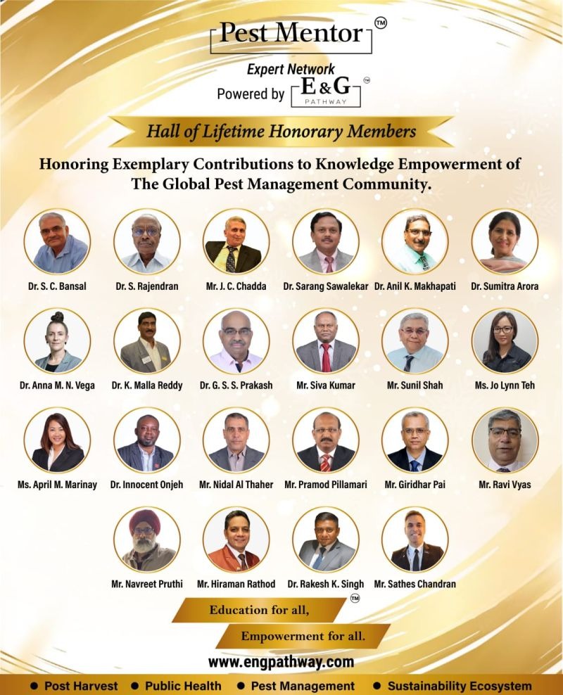 Pest Mentor Expert Network is proud to recognize and honor 22 Global Experts from Singapore, Philippines, Maldives, India, UAE, Nigeria, Jordan, and Europe as Lifetime Honorary Members.
