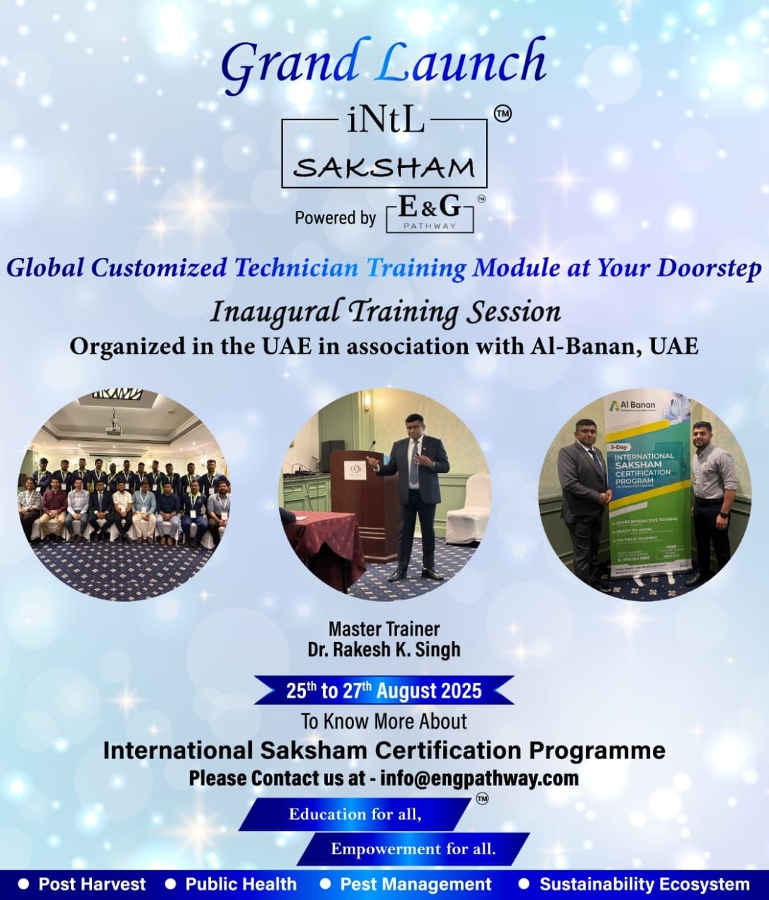 We are proud to announce the successful launch of the International SAKSHAM Certification Program (iNtL SAKSHAMโข) powered by E&G Pathway, in association with Al-Banan, UAE.