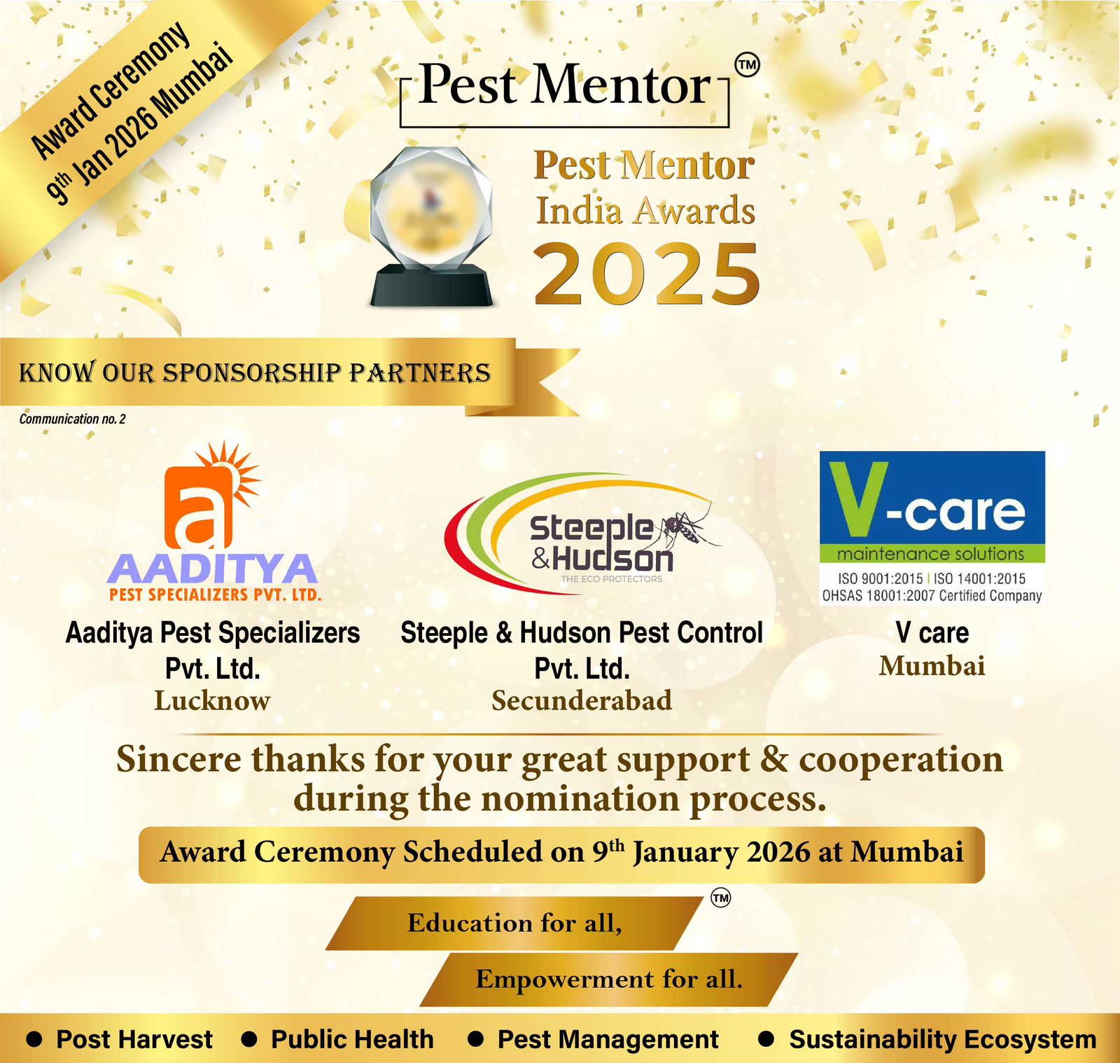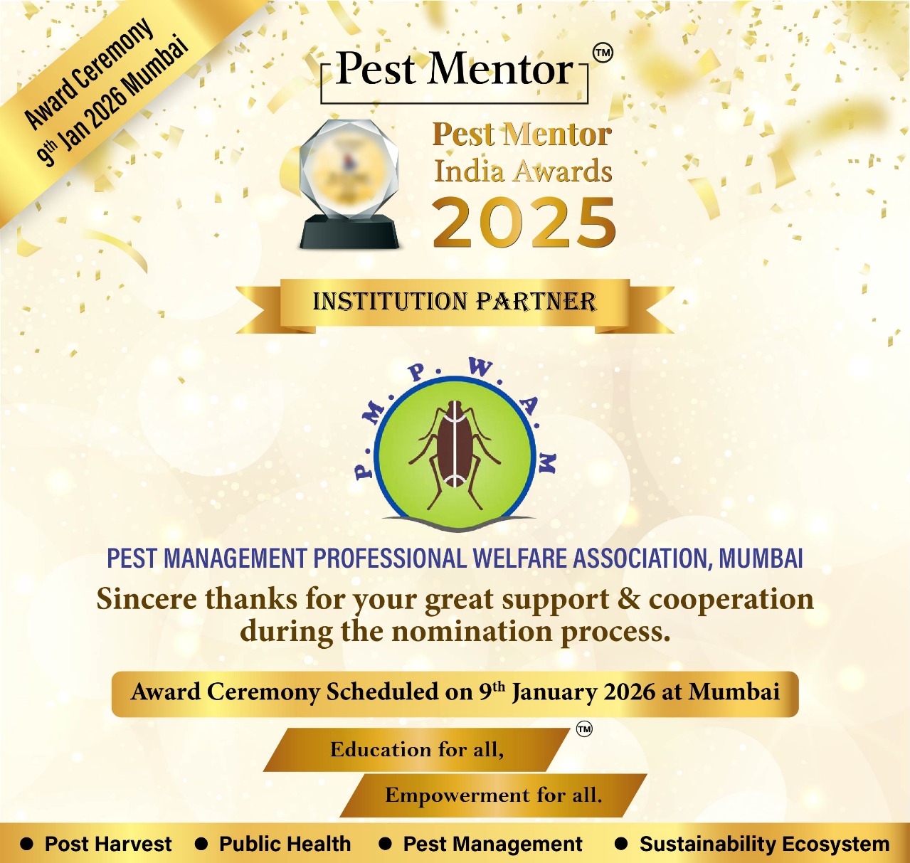 We are pleased to announce the successful completion of the nomination process and Jury evaluation for the Pest Mentor India Awards 2025.