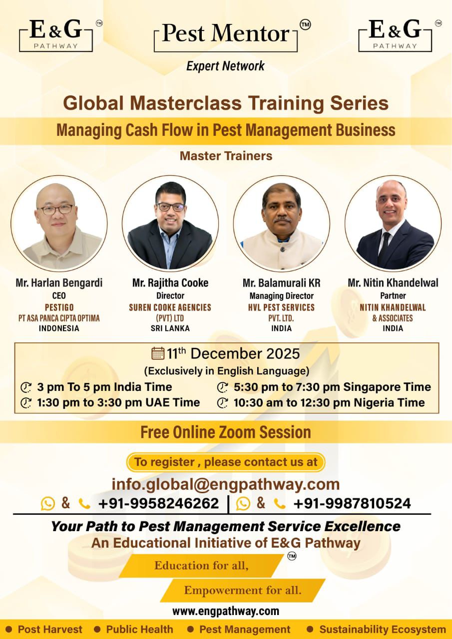 Pest Mentor, powered by E&G Pathway, presents an exclusive international online session designed to enhance financial efficiency and cash flow management in the Pest Management Industry.