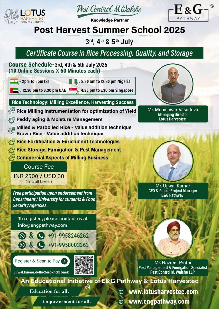 A specialized Certificate Course in Rice Processing, Quality & Storage, designed for professionals, students, and institutions passionate about Rice Technology, Milling Excellence & Harvesting Success.